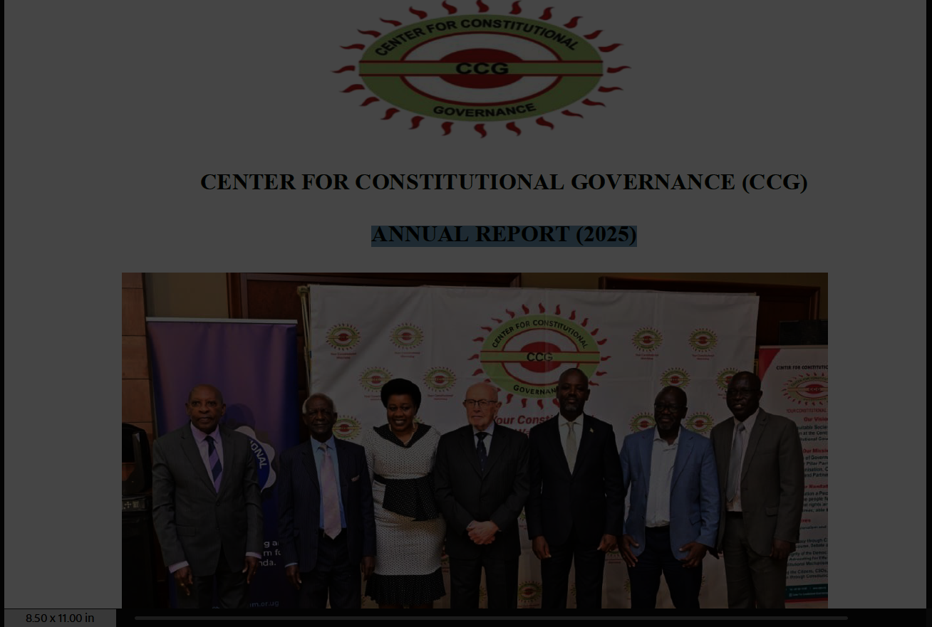 This document is the 2025 annual report of the Center for Constitutional Governance (CCG), highlighting its activities, programs, and reflections on Uganda’s constitutional milestones and democratic governance in East Africa.